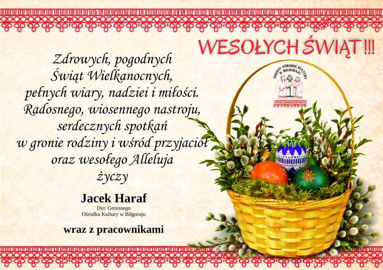 - 2026-03-27 Konkurs Wielkanocny na Palmy, Pisanki i Ozdoby Wielkanocne Jak co roku Gminny Ośrodek Kultury w Biłgoraju zorganizował konkurs na tradycyjne ozdoby wielkanocne dla uczniów szkół z Gminy Biłgoraj.